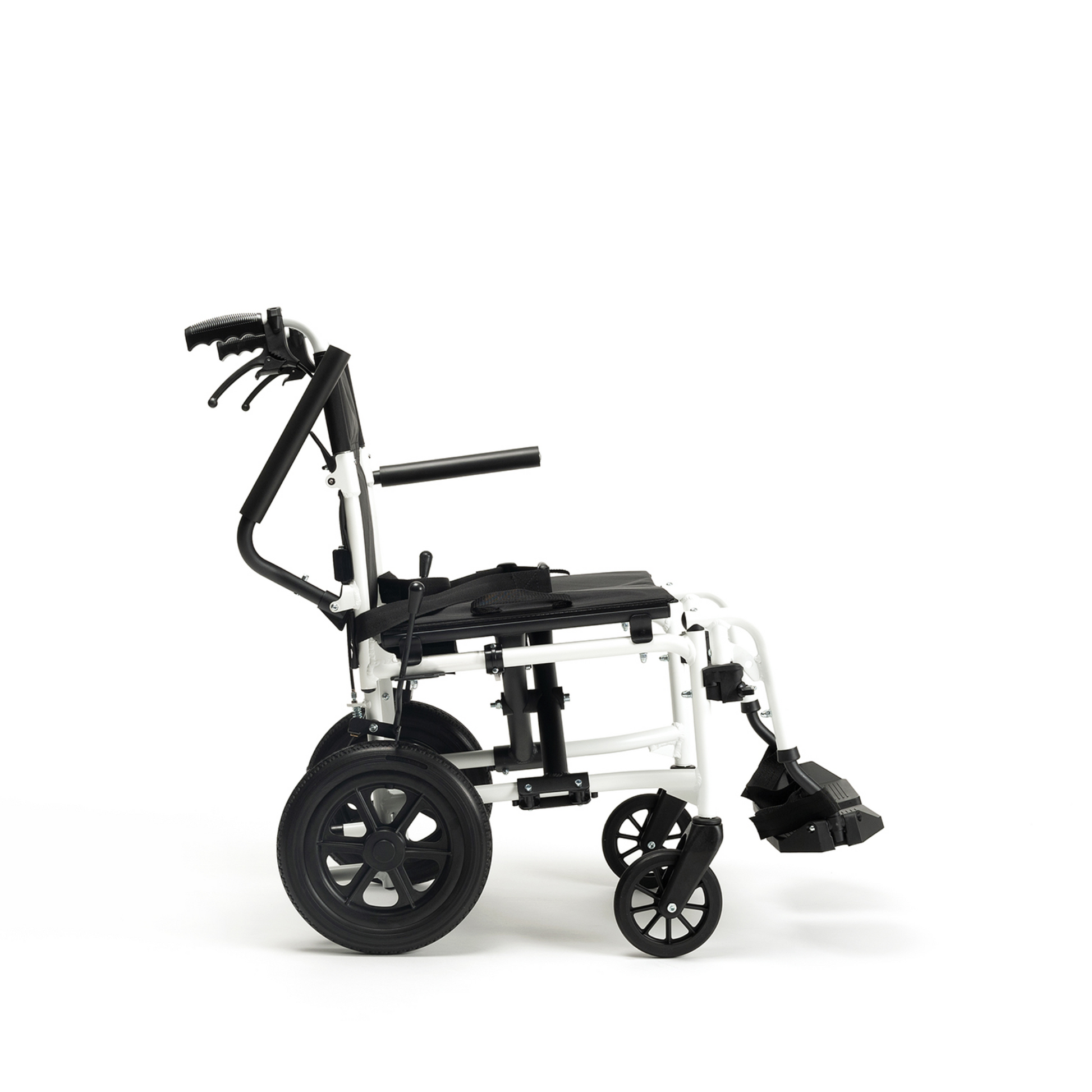 BOBBY EVO è una carrozzina compatta e leggera, progettata per facilitare il trasferimento delle persone. Il telaio in alluminio e le dimensioni contenute la rendono ideale sia per l’uso domestico che per l’esterno. Lo schienale abbattibile e il peso ridotto consentono un facile posizionamento in auto. Dotata di braccioli ribaltabili e pedana B06 regolabile in altezza, girevole ed estraibile, garantisce comfort e praticità. Le ruote antiforatura in krypton soft assicurano stabilità e durata.