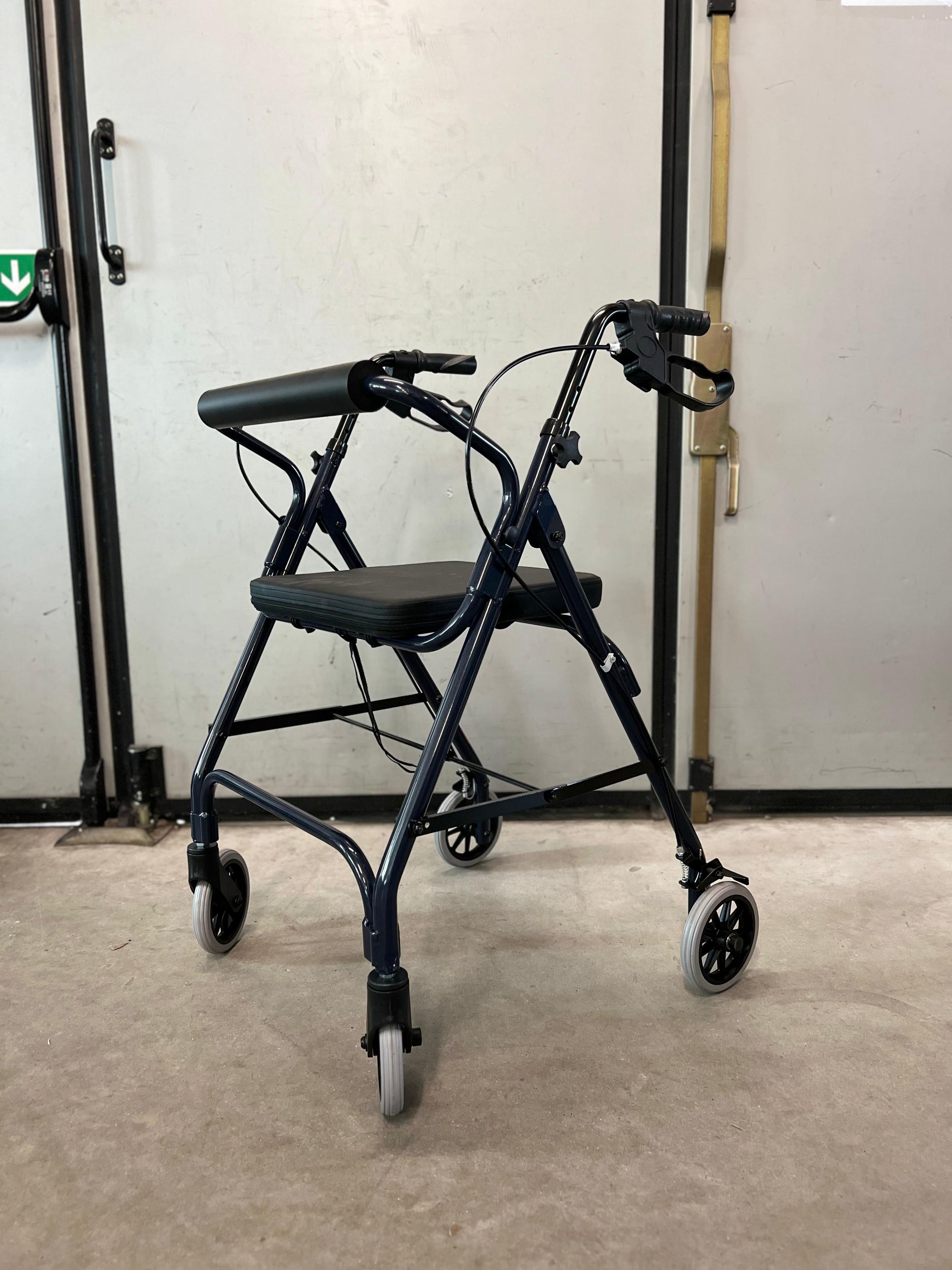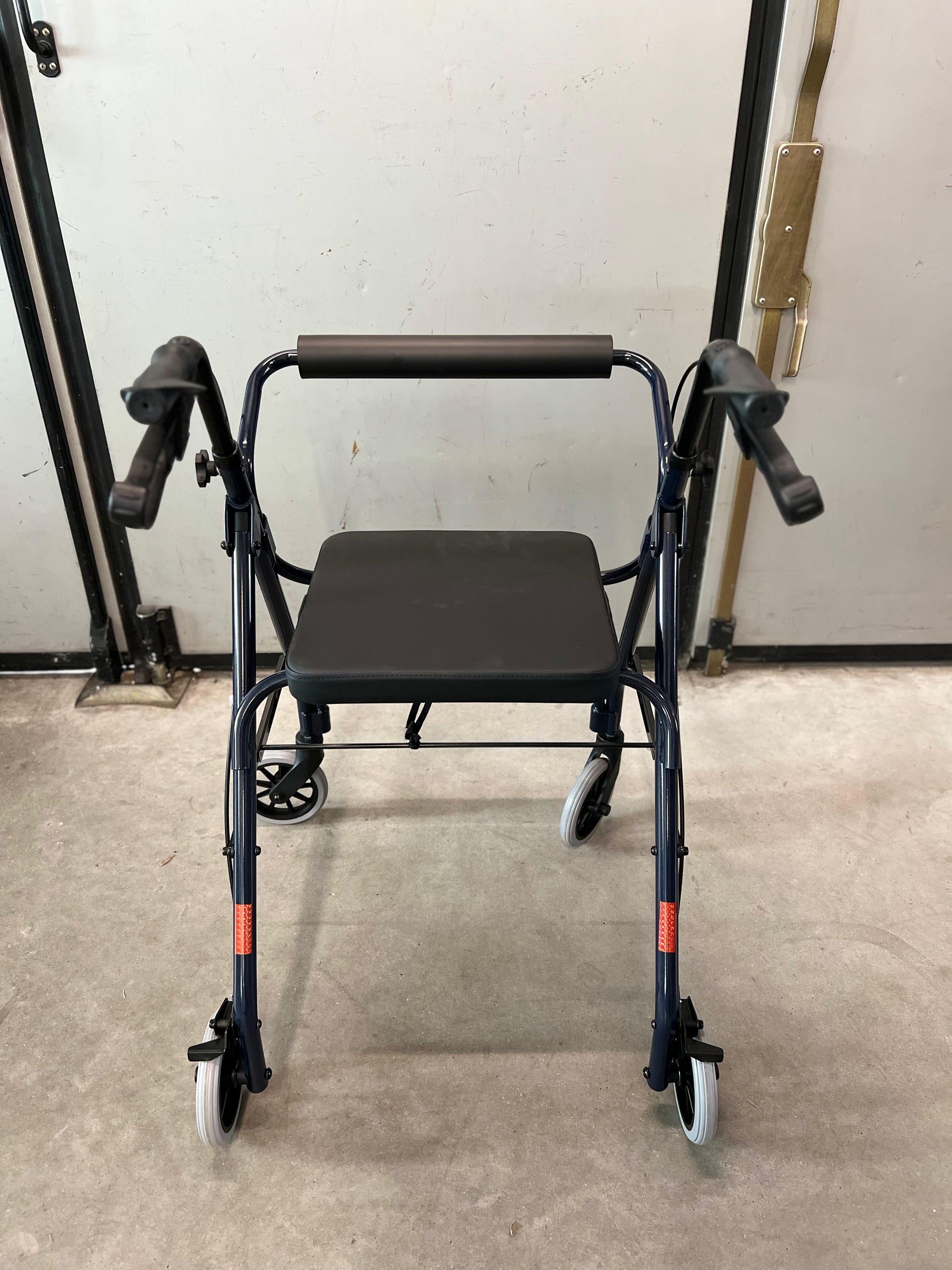 Soluzione ideale per una mobilità sicura. Realizzato in alluminio leggero con ruote posteriori fisse e anteriori piroettanti, monta un sedile rigido imbottito, un appoggia schiena imbottito e impugnature ergonomiche regolabili. Include anche un cestino metallico porta oggetti. Comfort, praticità e resistenza lo caratterizzano.