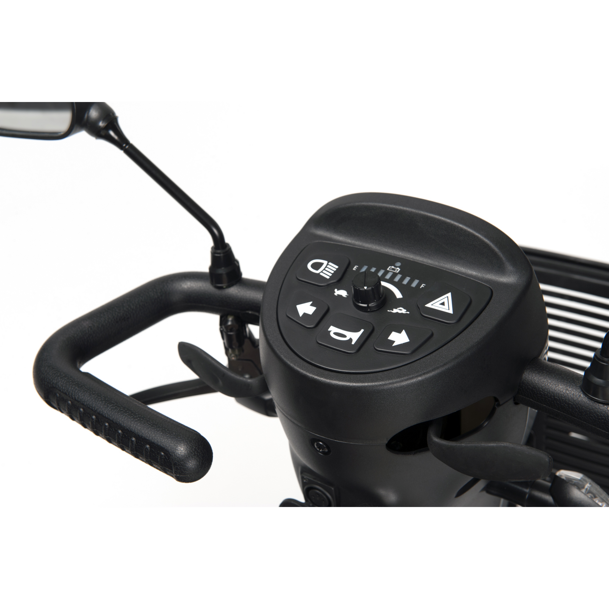Lo scooter modello ERIS è progettato per facilitare piccoli spostamenti con comfort e sicurezza. Dotato di frecce e luci a LED per una migliore visibilità, offre un sedile regolabile con braccioli rimovibili e regolabili in profondità, adattandosi alle esigenze dell’utente. Il resistente cestino anteriore è facilmente rimovibile, mentre una pratica tasca posteriore consente di riporre documenti o oggetti personali. Con motore da 320 W, due batterie da 38 Ah e una velocità massima di 10 km/h, ERIS garantisce autonomia e affidabilità.