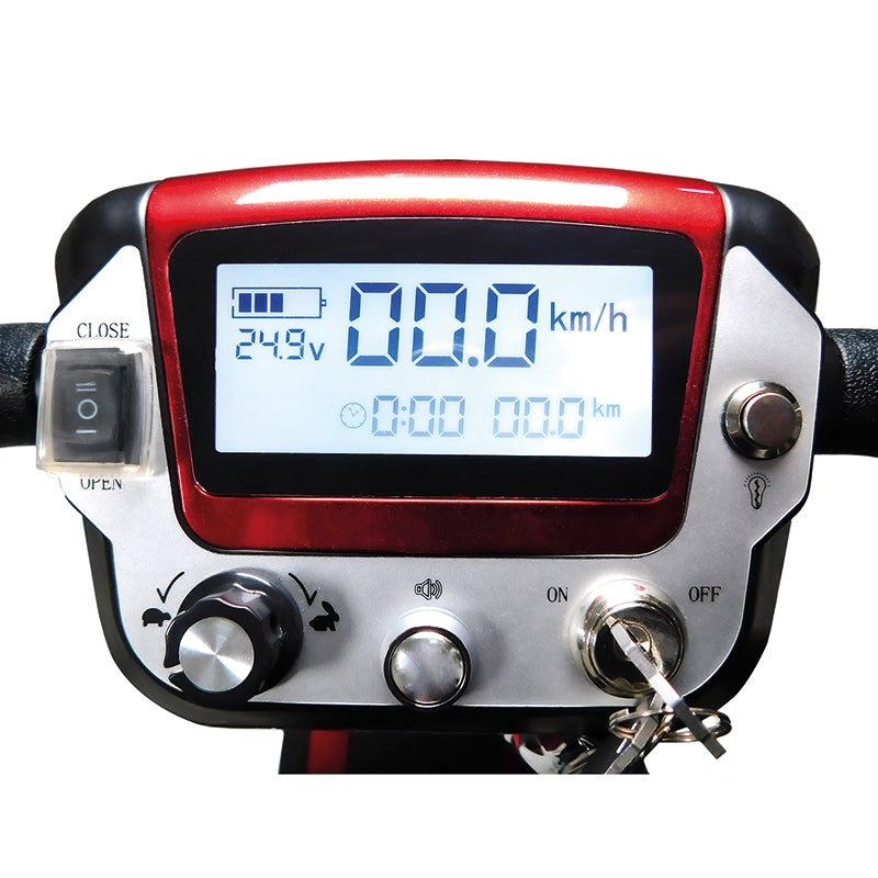 Progettato per offrire ai suoi utenti la massima semplicità di trasporto: leggero, compatto e facilmente ripiegabile, presenta un telaio robusto con regolazioni manuali di inclinazione e altezza del manubrio per una guida personalizzata. Lo schermo LCD e i pulsanti permettono di controllare le funzionalità dello scooter ed avere una visione chiara dello stato della batteria. A tutti questi vantaggi si aggiunge il plus di uno schienale ribaltabile e braccioli regolabili in altezza per una maggiore comodità.