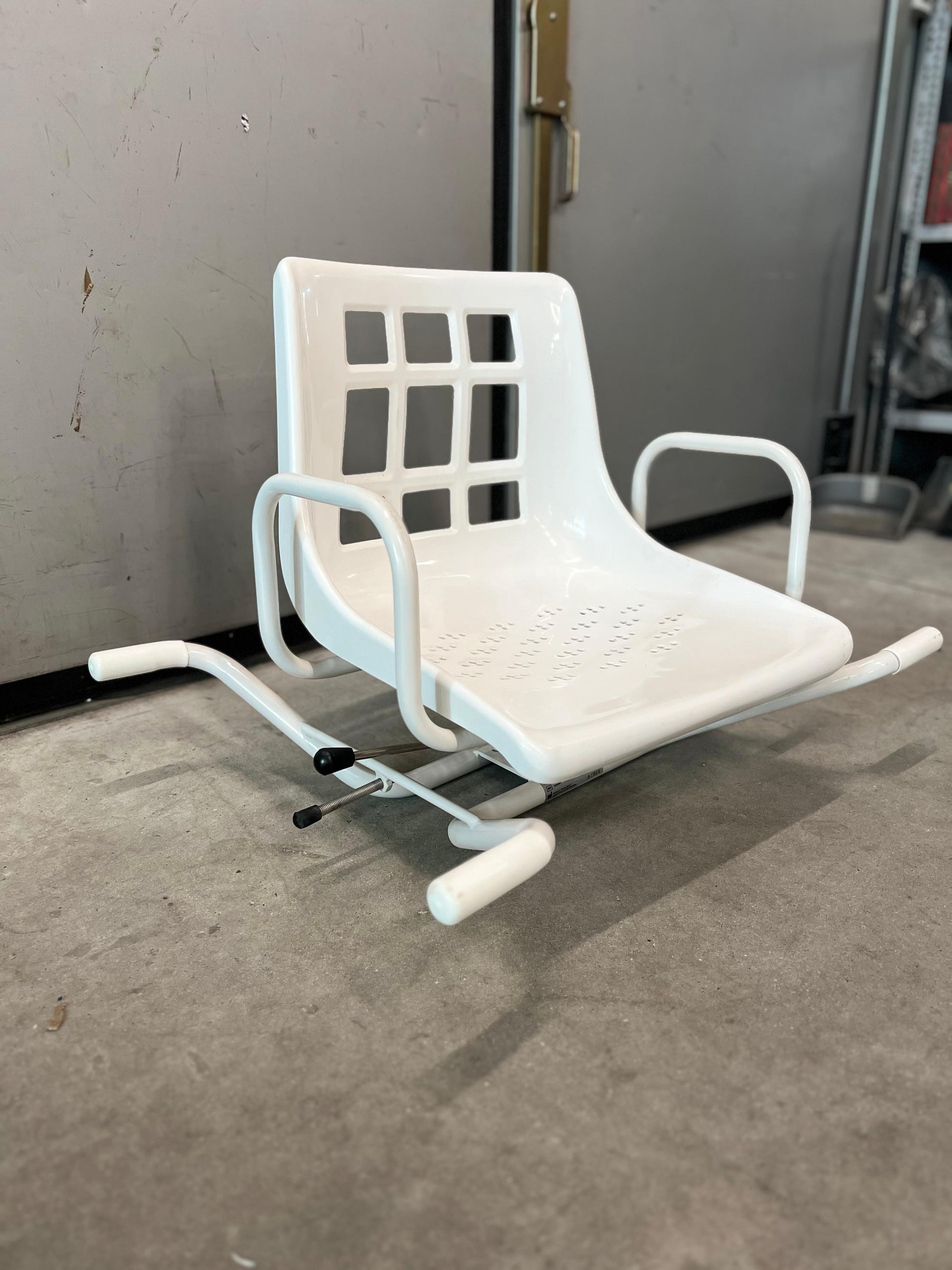 Sedia girevole per vasca con struttura in acciaio verniciato.
