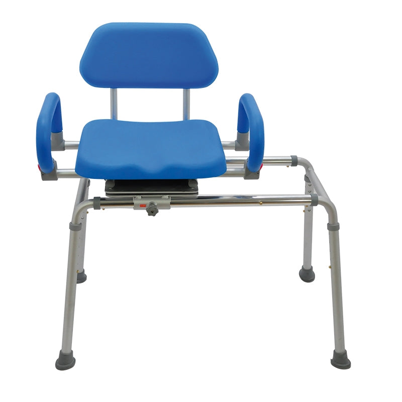 La nostra sedia da vasca o doccia scorrevole offre una struttura in alluminio regolabile in altezza con una seduta ergonomica in morbido PU girevole a 360°. Il sedile scivola fino a 50 cm e i braccioli ribaltabili sono regolabili per adattarsi alle diverse dimensioni. Un prodotto di qualità superiore, realizzato per la sicurezza dei tuoi momenti di relax.